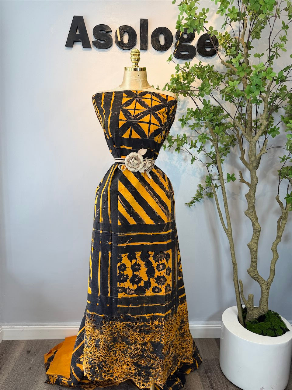 Where heritage meets elegance. This fabric brings together the artistry of traditional Adire dyeing and the graceful texture of lace, resulting in a unique textile that celebrates African craftsmanship with a contemporary touch.